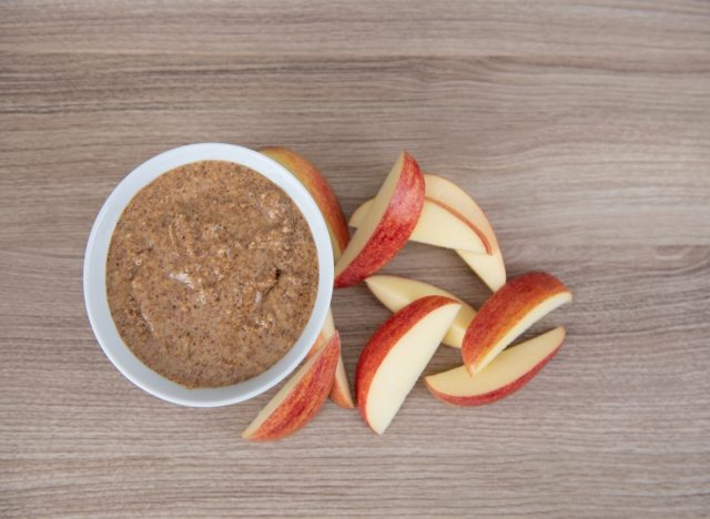 Miếng táo với bơ hạnh nhân.